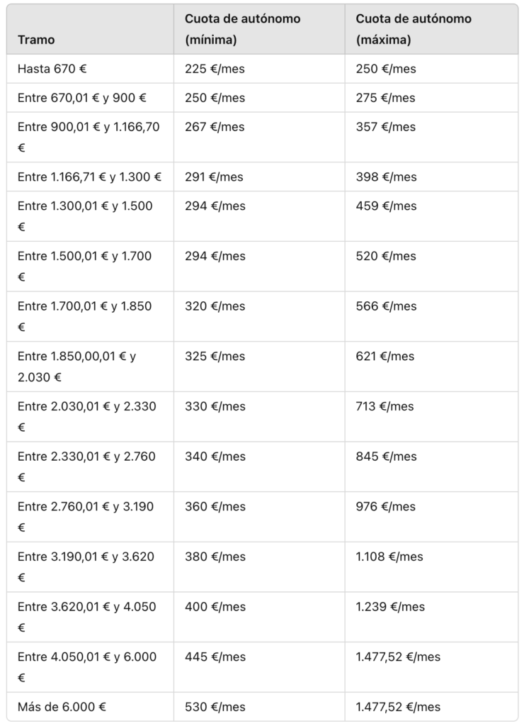 Desde el 1 de enero de 2023, el cálculo de la cuota de autónomos se basa en unos tramos establecidos por el Gobierno, que se fundamentan en los ingresos reales del trabajador por cuenta propia. Este nuevo sistema tiene como objetivo que la contribución de los autónomos a la Seguridad Social sea más equitativa y ajustada a su capacidad económica.